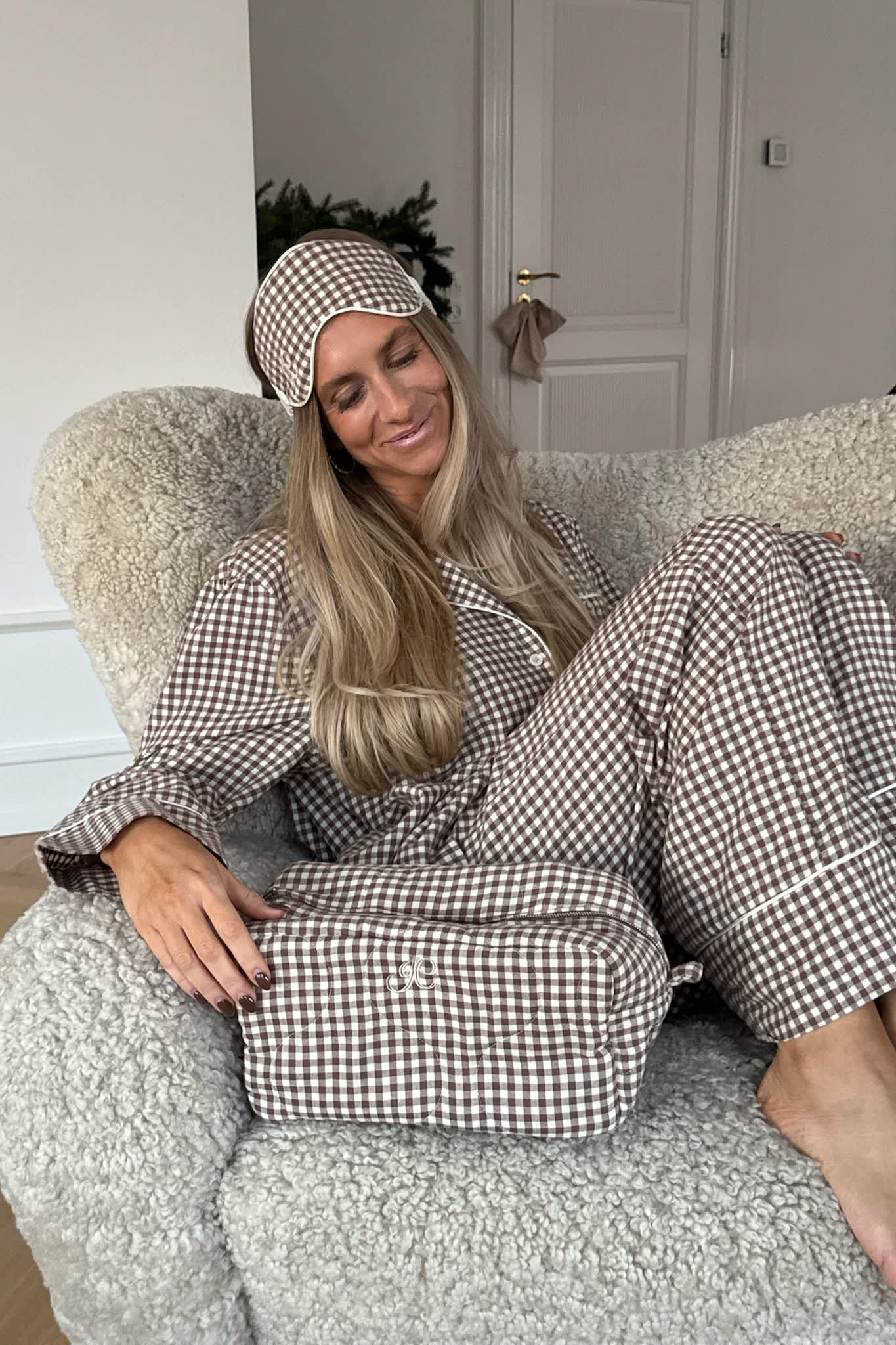 EmilieIC Sleeping Mask - Beige Checks