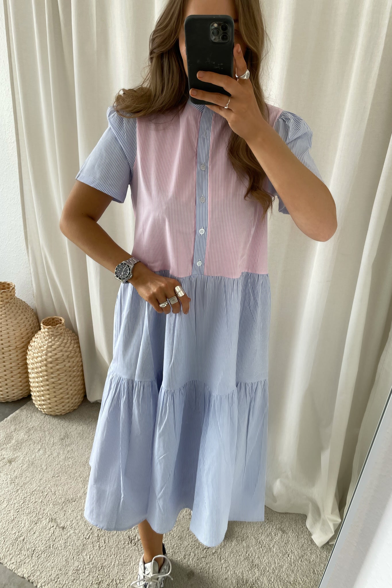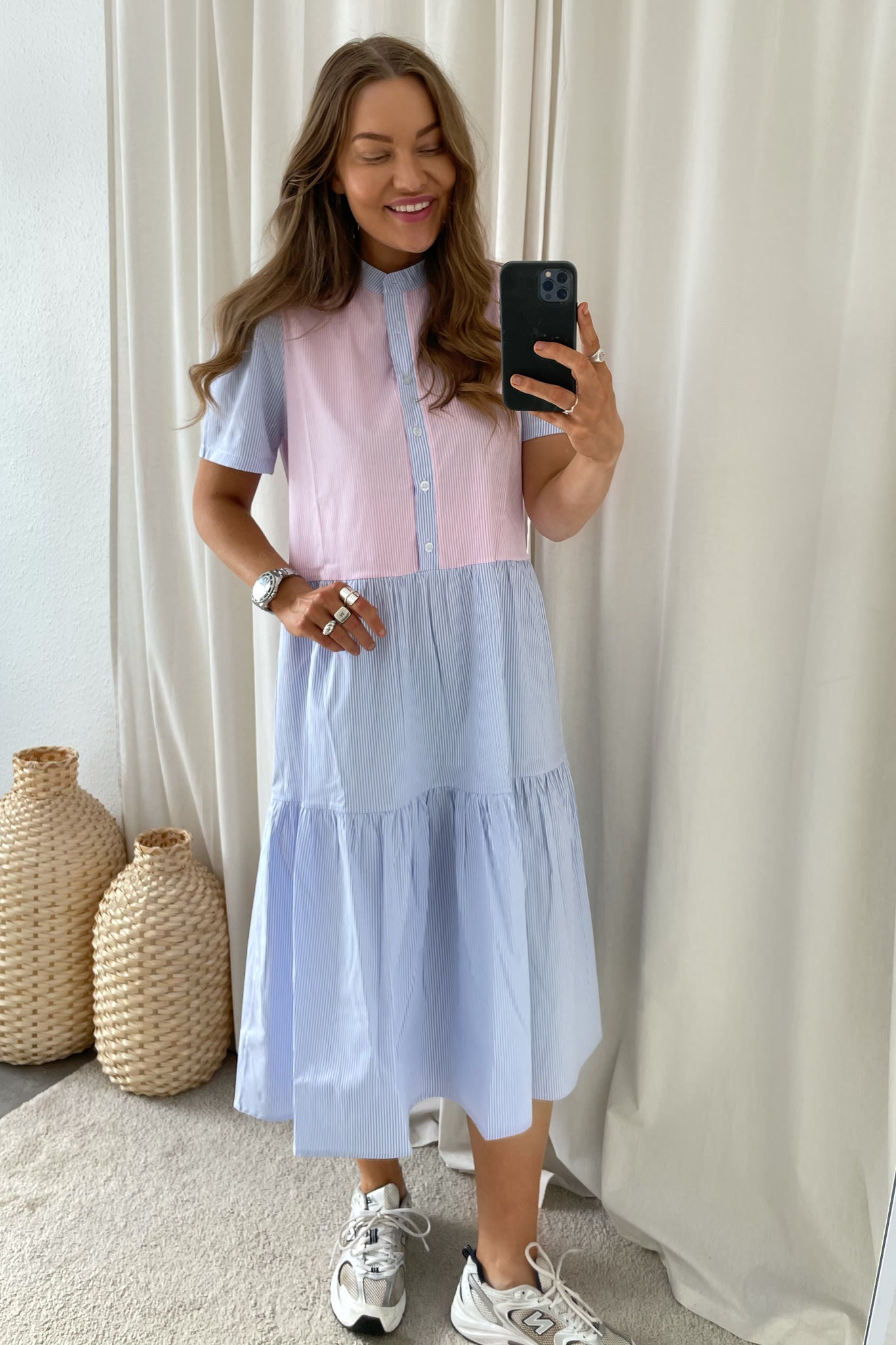 Lipe Dress Cotton Poplin - Blue Rose Stripe
